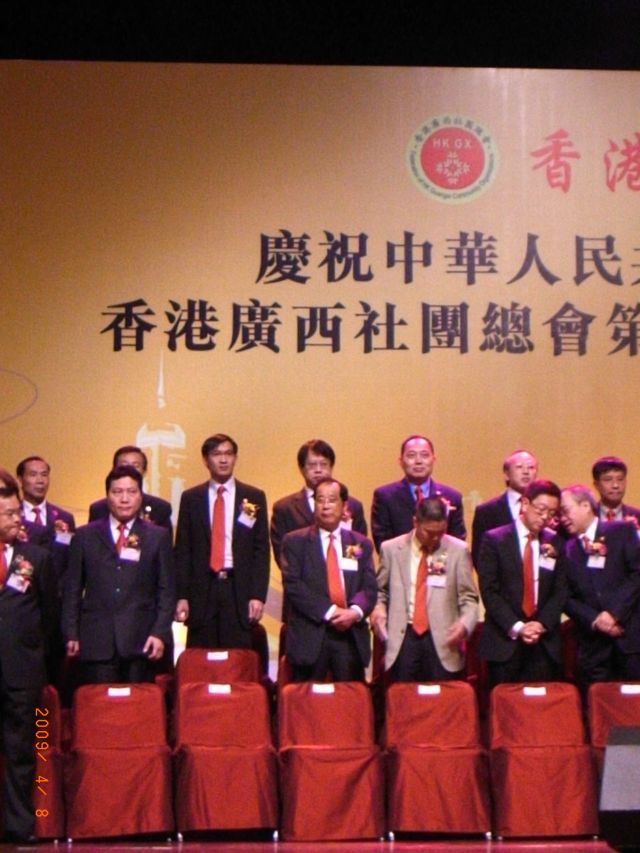 今年是我國成立60周年的大日子,香港廣西社團總會於2009年4月8日(星期三) 晚上6時30分,假座香港會議展覽中心新翼5樓大禮堂隆重舉行「慶祝中華人民共和國成立60周年國慶暨香港廣西社團總會第二屆常務理事會就職聯歡晚會」。公司主席甄韋喬先生是次以常務理事身份獲邀出席是次活動。當晚有中央統戰領導、廣西自治區領導、中央駐港聯絡辦公室領導、特區政府民政事務局局長曾德成太平紳士、特區政府環境局局長邱騰華太平紳士等作主禮嘉賓。當晚全體常務理事上台就座並宣讀就職誓詞,是次活動正式開始。