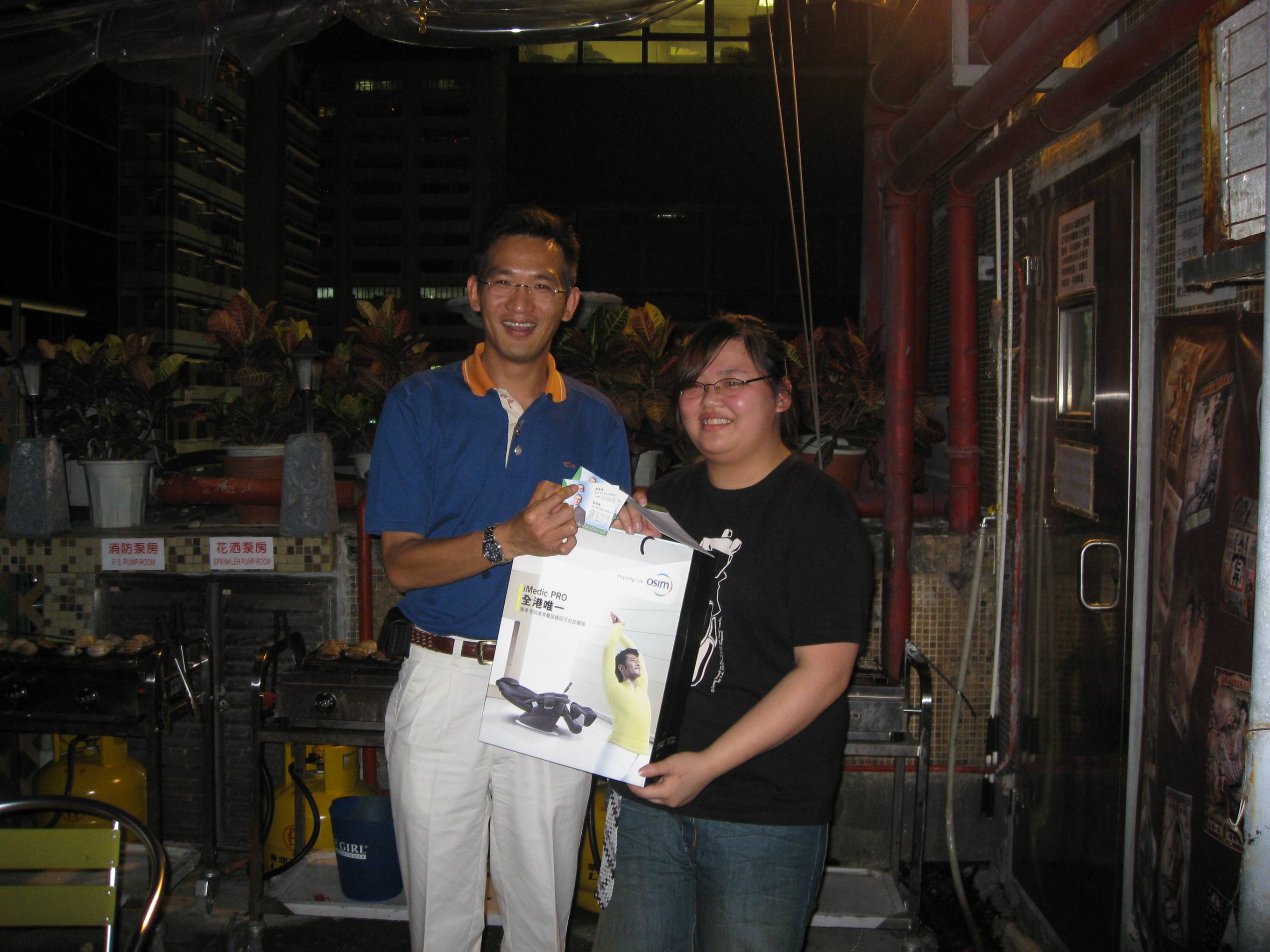?xml:namespace>董事總經理甄韋喬先生頒贈頭獎予人力資源部同事姜靜儀小姐 |