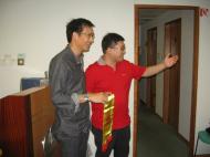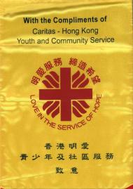 香港明愛代表陳先生頒發紀念旗予甄先生 |