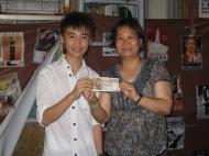?xml:namespace>董事總經理甄韋喬先生頒贈頭獎予人力資源部同事姜靜儀小姐 |